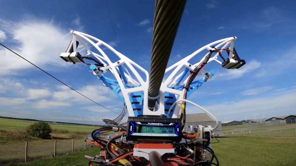 El dron, construido sobre la base de un cuadricóptero eléctrico comercial construido con fibra de carbono, está equipado con un microordenador Raspberry Pi y un módulo de piloto automático especializado. Para navegar y detectar líneas eléctricas, el dron utiliza una unidad de radar de onda milimétrica y una cámara de vídeo en color. La pieza central de esta tecnología es una pinza especialmente diseñada que está colocada en la parte superior del dron. La pinza tiene integrada una guía diseñada con dos brazos que se inclinan hacia adentro para facilitar la captura del cable eléctrico.
